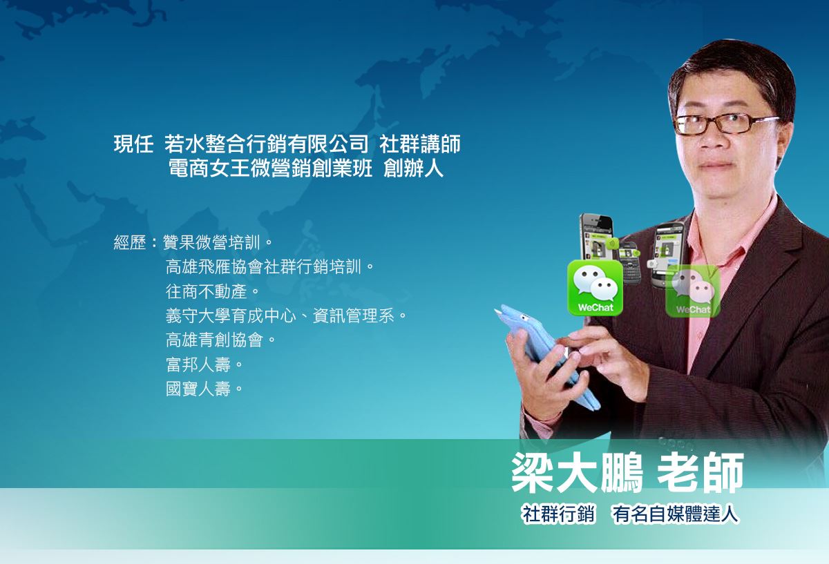 這堂課我們只分享實戰經驗,不談理論。學會微信行銷不僅讓你立足台灣、前進大陸;更能踏足東南亞市場。蠢蠢欲動了嗎?大陸的微商正在火熱的進行…每一波的趨勢都將造就許多千萬富翁、億萬富翁的產生;正所謂「站在風口上、連豬都會飛」。指尖時代的來臨,手機滑滑就能創造「微經濟」,您想錯過這波賺錢的機會嗎?趕快加入我們「玩轉微信 翻轉未來」。