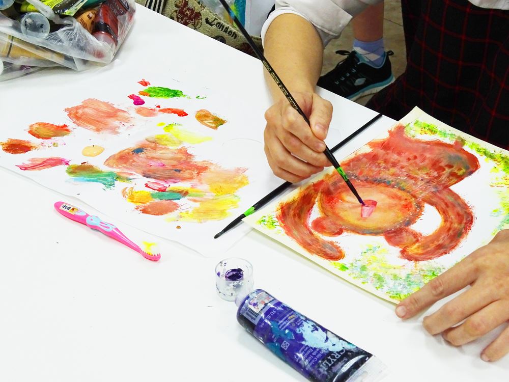 壓克力顏料的牙刷畫法,其上色過程可以拋開一切,
