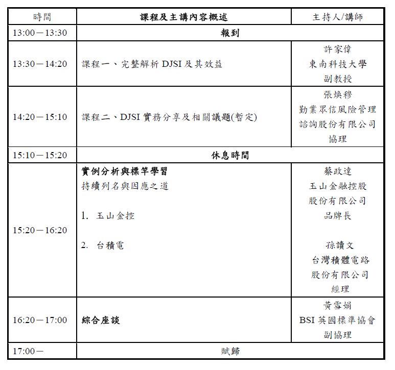 ☸實施對象:會員企業優先,歡迎專業人士、對「DJSI」議題有興趣之民眾或學生。