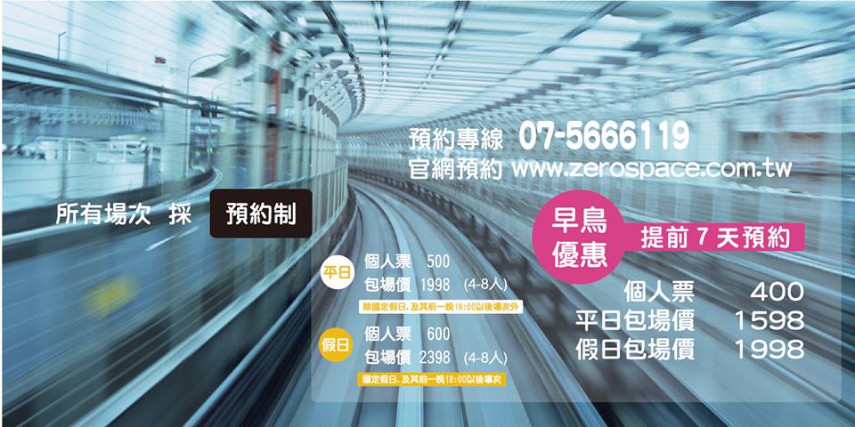 早鳥優惠-提前7天預約享平日包場$1598 假日包場$1998 單人票$400