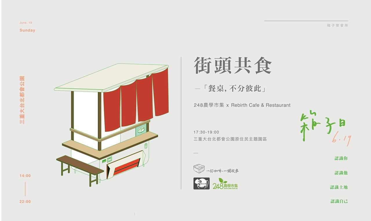 17:30-19:00 街頭共食,「餐桌,不分彼此」 248農學市集 x Rebirth Restaurant & Cafe