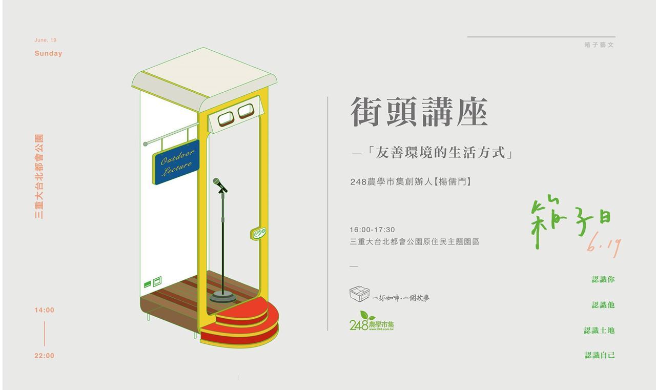 16:00-17:30 街頭講座,「友善環境的生活方式」 248農學市集創辦人【楊儒門】