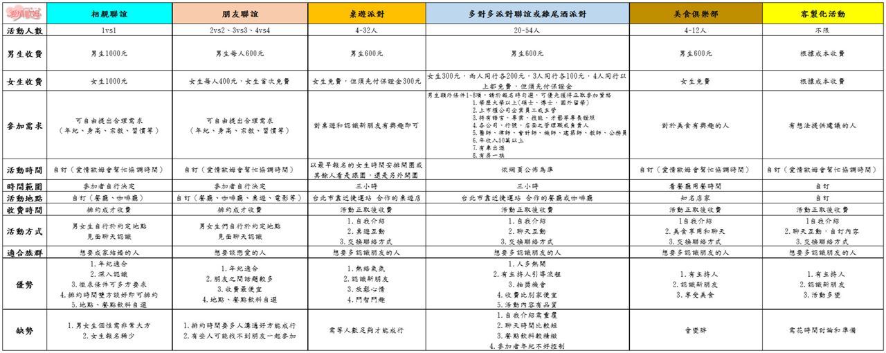 2.以女生的時間為主,主辦單位會告之有女生參加的時間,大家自由選擇