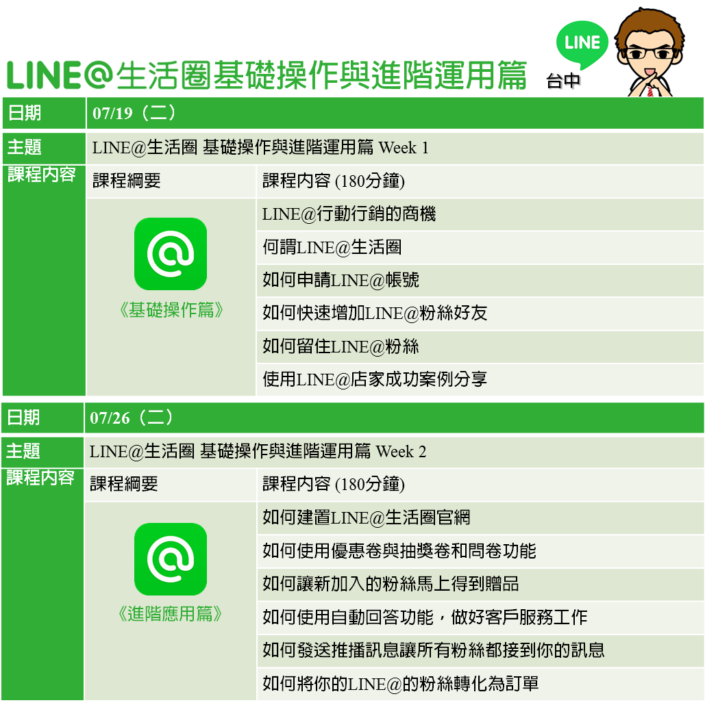 協助您從最基本操作到進階實際開辦及執行,帶領您一同體驗LINE@生活圈的商機!