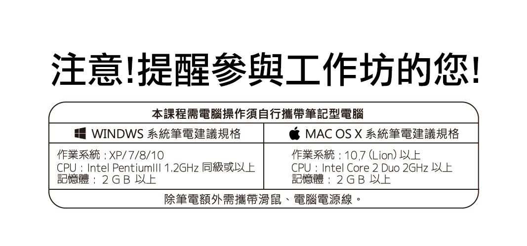 課程時間:2016年7月16日 09:00~16:00 及 7月17日 09:00~16:00。