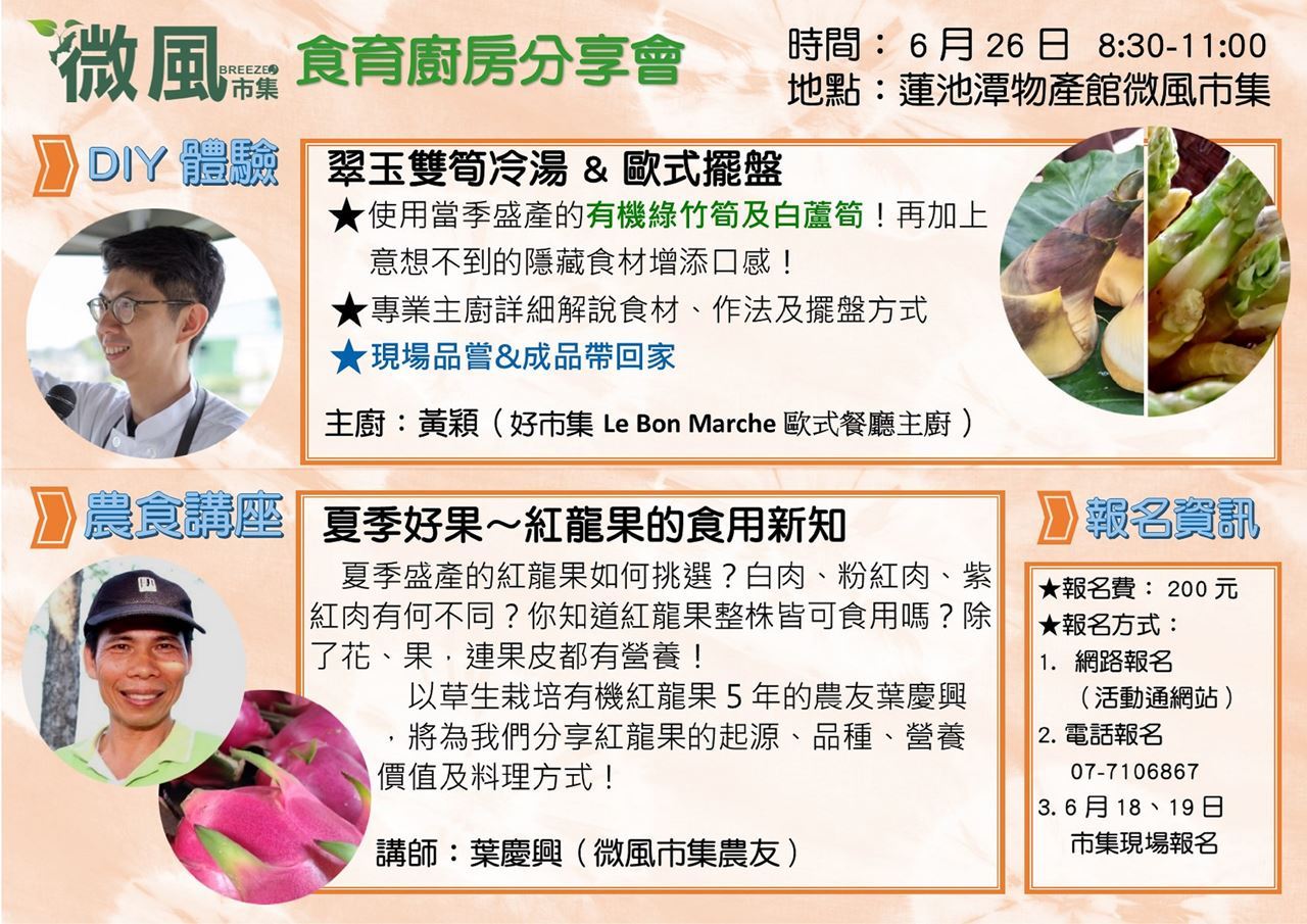 10:00-11:00 讀書會活動 由微風市集農友葉慶興分享「紅龍果食用新知」主題