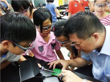以體驗課程為基礎,從科學實驗的操作中,淺移默化地學習到科學原理,讓孩子在歡笑中,種下科學根基,並進一步延續應用到主題應用部分,期待在這樣一系列的培育下,啟發孩子的創客精神與發散性思維能力,進而有獨創思考,在眾人中脫穎而出,成為引領時代的發明新力量。