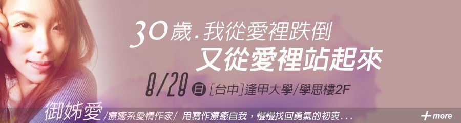 30歲前的她,是大家心中的人生勝利組,直到從雲端上跌了一跤…歷經一段自我質疑的時期,她透過寫作、演講,開始踏上找尋自我的旅程,為人生開了另一道窗。從OL轉變到愛情作家,她細膩的文字深入讀者的內心,讀者的回饋更讓她感受無數溫暖,她才發覺,寫作、其實慢慢療癒了自己,讓她找回對愛情的勇氣。