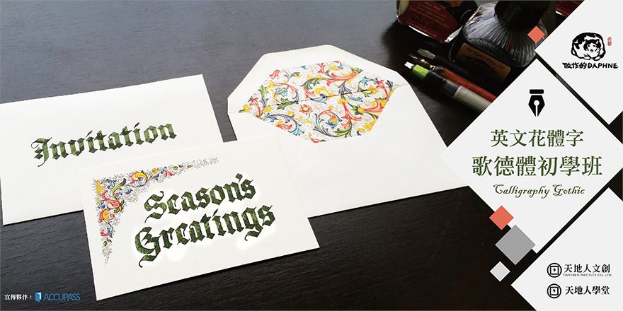 課堂上將會學習歌德體的改良版,保有字體本身華麗的特徵,但更適合初學者學習。