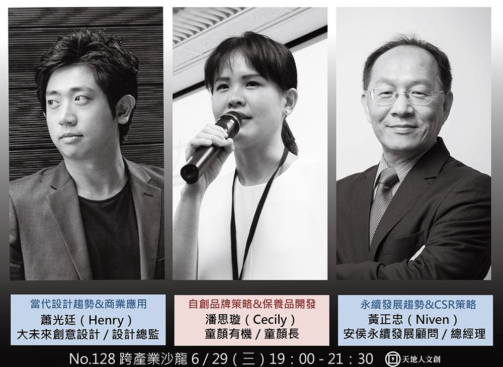 Cecily曾任職於台灣證券交易所、資誠聯合會計師事務所,負責推動外國企業來台第一上市、公開資訊觀測站改版等業務,並為Mbox飾品在台代理商及Sharelike電子集點系統之共同創辦人,目前亦為杏和聯合會計師事務所會計師、有物報告電子報主筆,及SLP(StartupLeadershipProgram)台北之執行團隊。N.128天地人跨產業沙龍邀請童顏有機執行長Cecily分享: