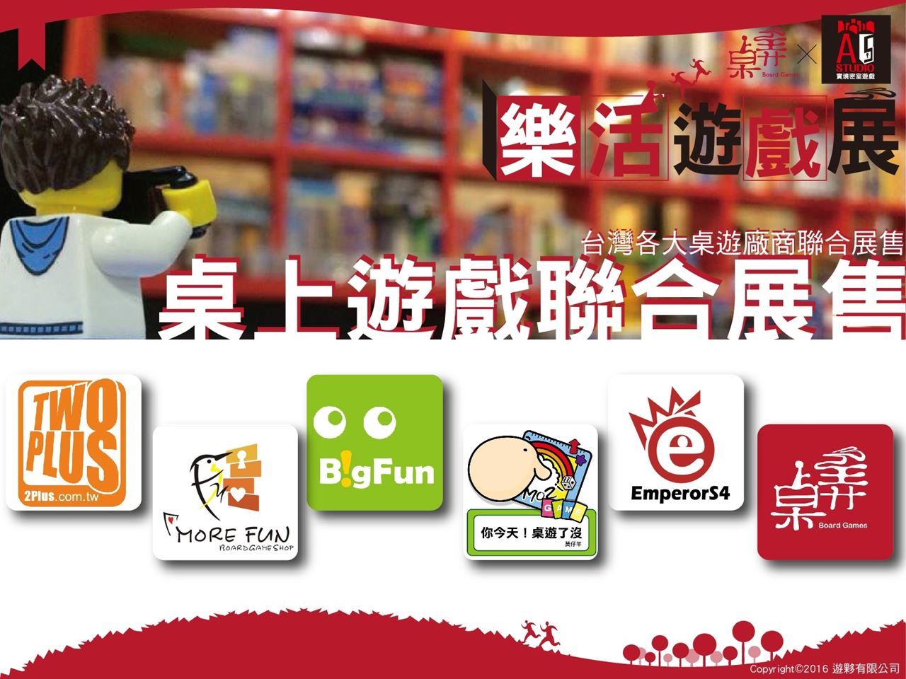 台灣各大本土桌遊廠商聯合展售,有著各式最新最夯的桌上遊戲,不管是Party類、陣營類、益智類等等,還是符合各年齡層,支援各種玩家人數的桌遊通通都有,現在樂活遊戲展把它集結在一起,讓你可以盡情參觀選購。