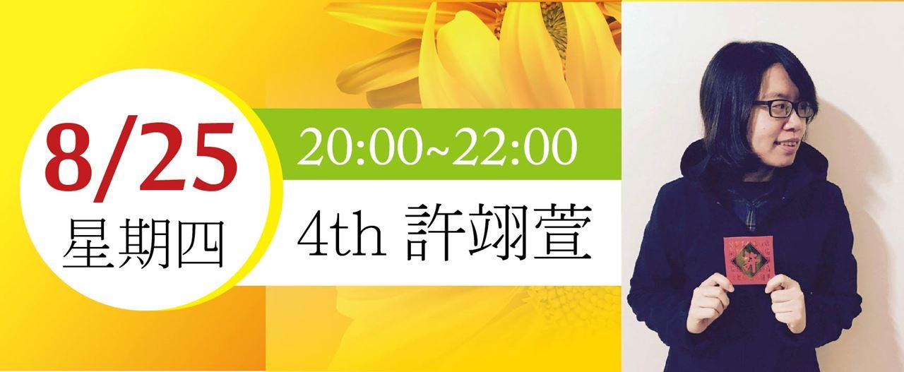 8/25(四),2000-2200,南方創客-許翊萱
