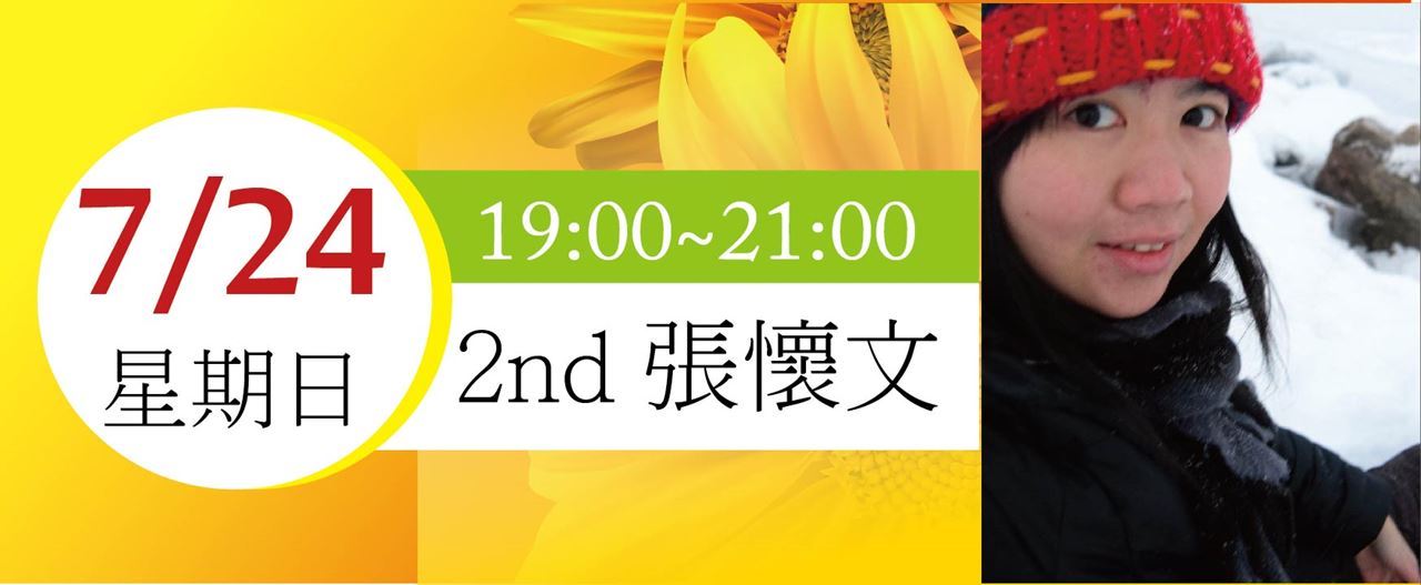 7月24日一起來聽率性女孩張懷文的分享!