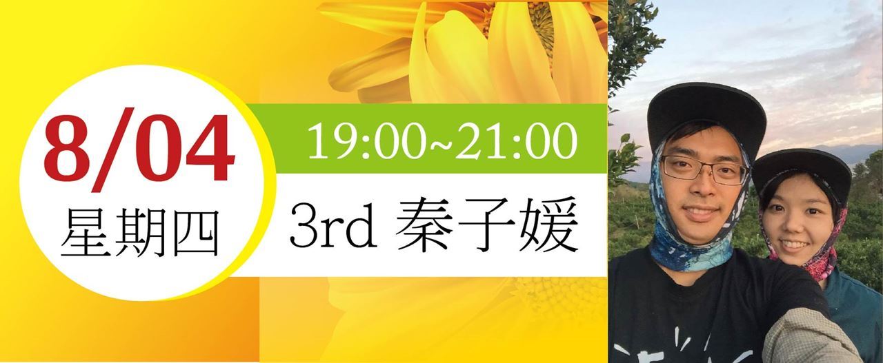 8/04(四),1900-2100,百大青農--秦子媛