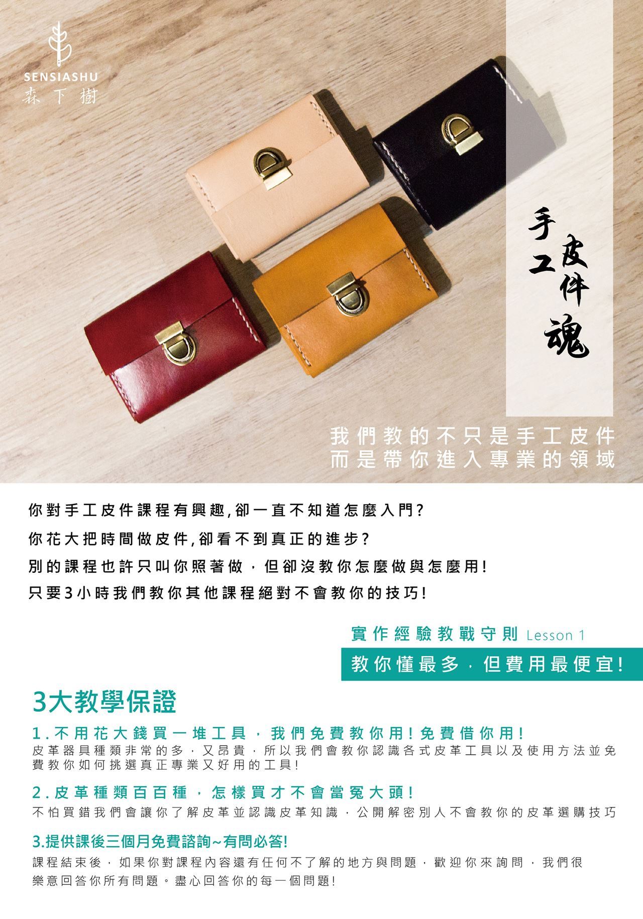 2.如欲再加購森下樹任一包款材料包價格為市售價9折(限原色、黑色與咖啡色皮革)(課後寄送))