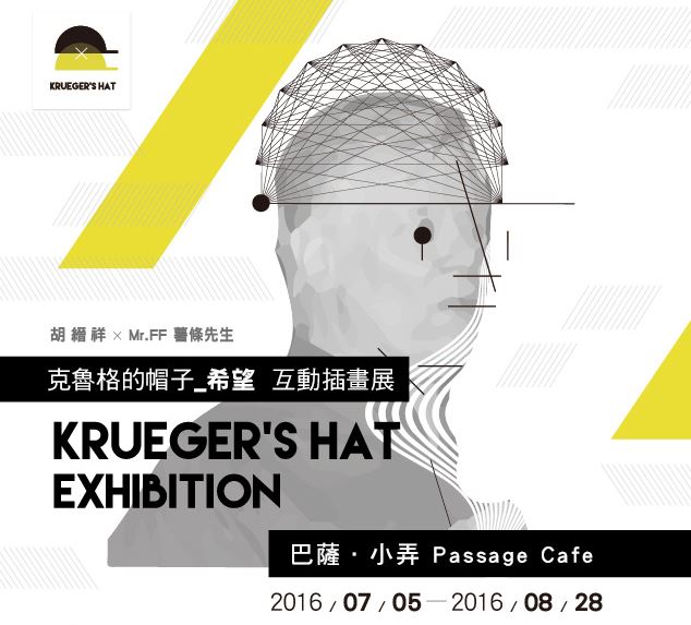 克魯格的帽子互動圖像展是一次實驗性的撞擊,新媒體藝術家胡縉祥與插畫家蔡承峰(薯條先生),嘗試在媒體藝術與插畫中間尋找甜蜜點,保有媒體藝術的概念性,科技媒材運用,以及插畫家本身的作品風格與童趣頑味,兩人試圖帶著各自擅長的技法,跨越領域結合成全新的互動圖像展,展覽內容以帽子解釋自我定位價值做為主題概念發想,使用導電油墨、頭戴顯示器、擴增實境、體感互動、機動裝置等新媒體結合插畫作品去貫穿概念,解構成五個階段來重新詮釋,希望能夠用不同的角度與手法,產生新的觀看作品方式。
