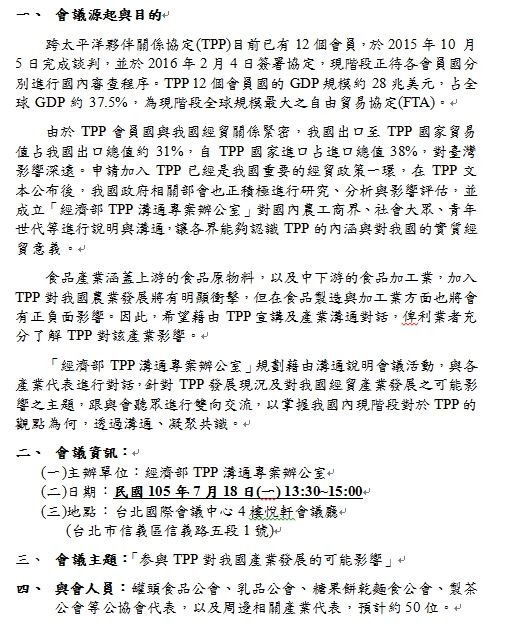 TPP產業溝通座談會--「食品暨加工產業」