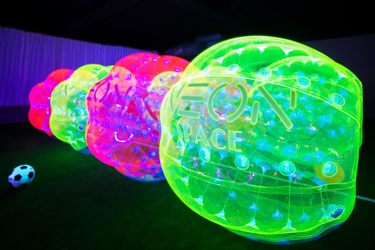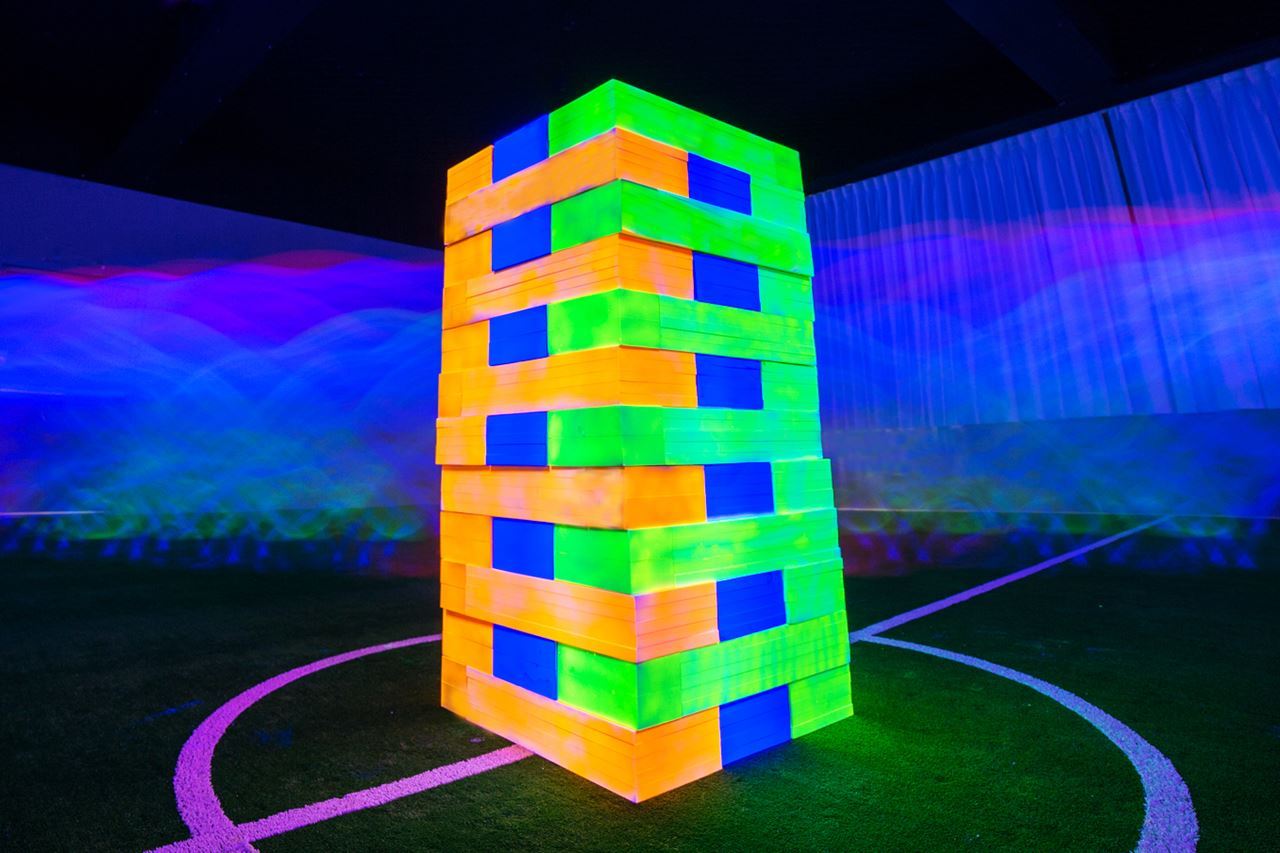試營運期間8-20人,一小時包場價4000元,皆可體驗螢光泡泡足球與螢光疊疊樂!