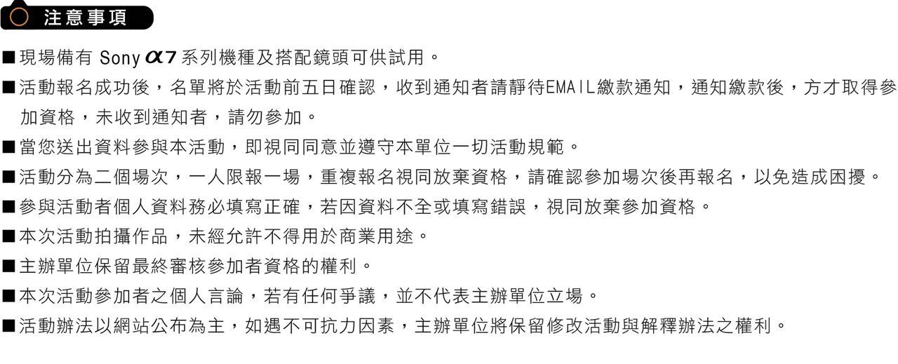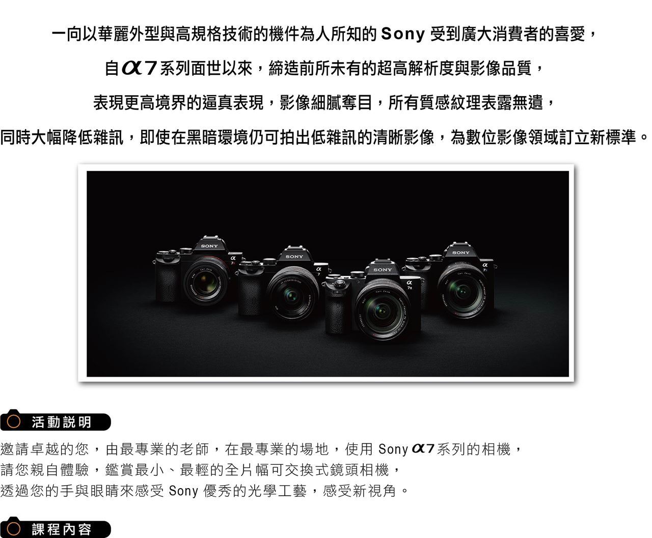 14:00~15:00-(1)攝影師最重要的工作:畫面概念及創意的發想 (2)Live Shooting-講師講解器材設定及實拍示範
