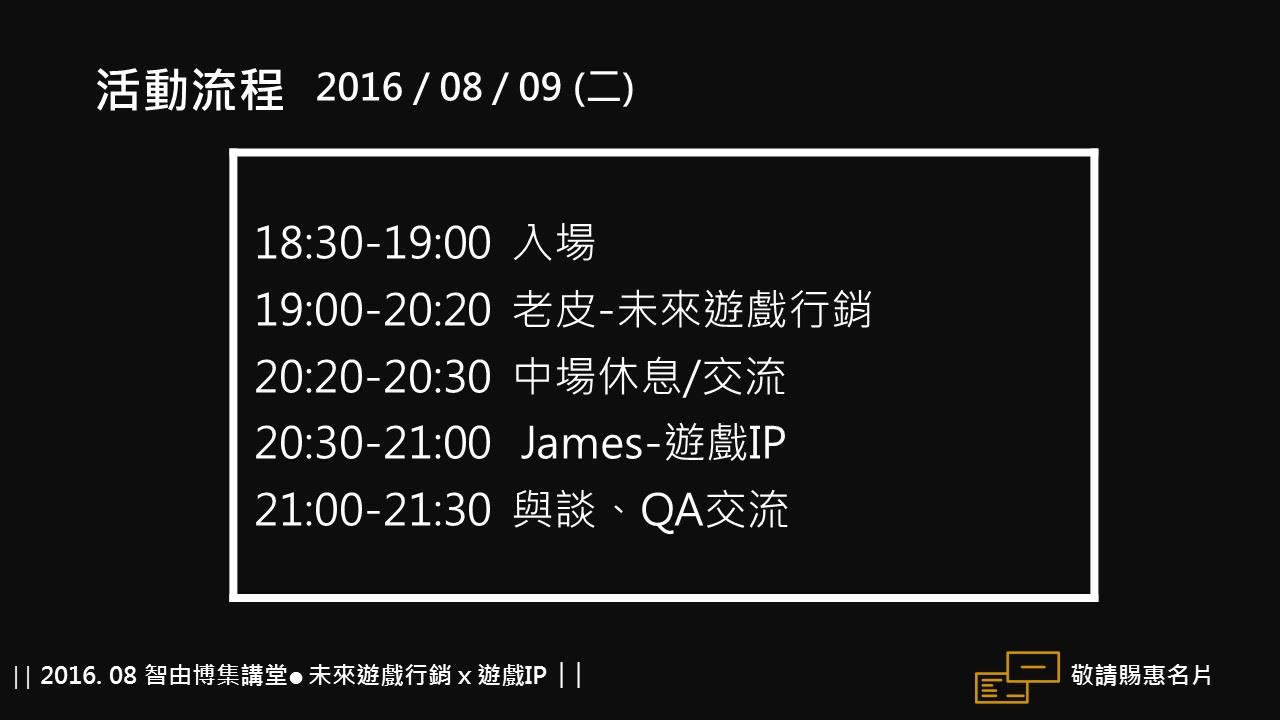 2016.08.09 (Tue) 18:00 - 21:30 (GMT+8)
