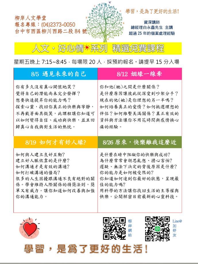柳岸人文學堂8/5 遇見未來的自己