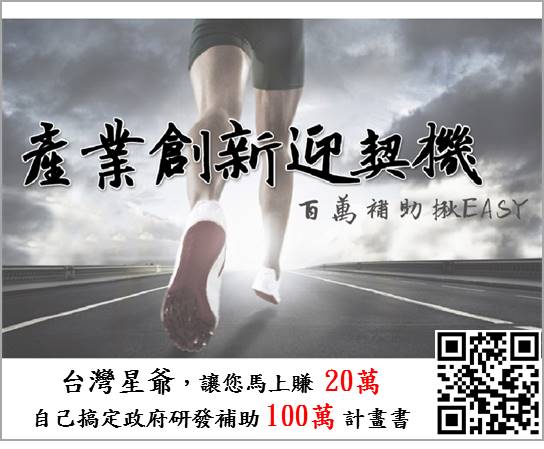 3.台灣星爺案例分享,通過台北市創新研發補助100萬元案例(不用還)。