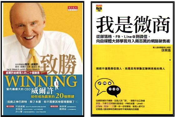 - 書名2【我是微商…自媒體大師月入200萬的網路銷售】》; 作者: 徐東遙 (華人微商協會的核心導師)。