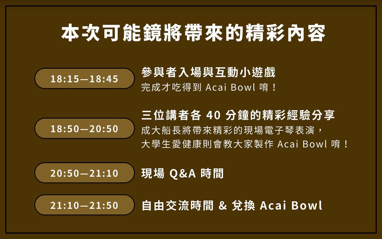 - 希望了解三位分享者的「非典型大學生活」,以及他們又是如何思考自己的生涯規劃。