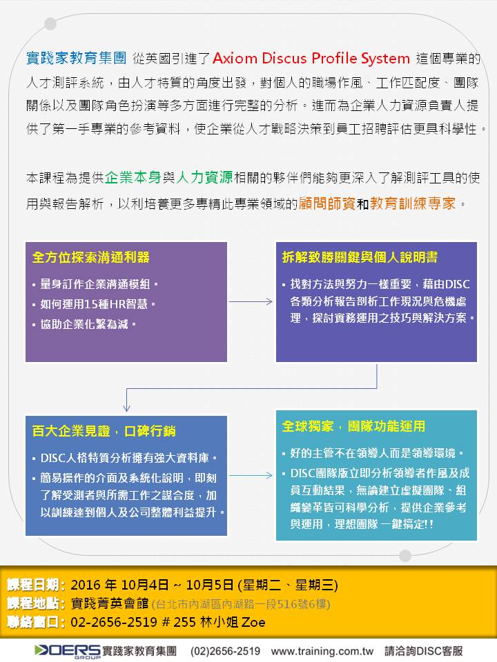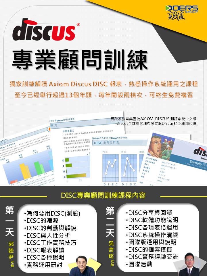 獨家訓練解讀 Axiom Discus DISC 報表,熟悉操作系統運用之課程至今已經舉行超過13個年頭,每年開設兩梯次,可終生免費複習