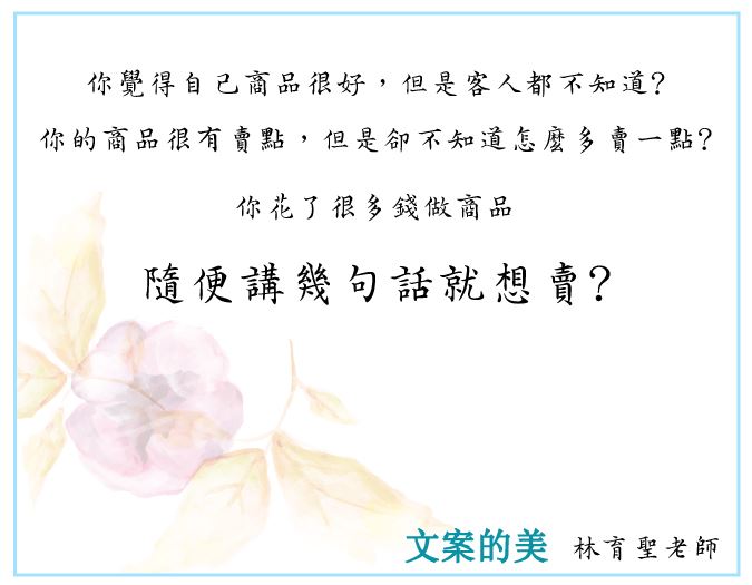 花了很多心思做產品,那更要花一點心思上課,將你商品的好寫給大家都知道。