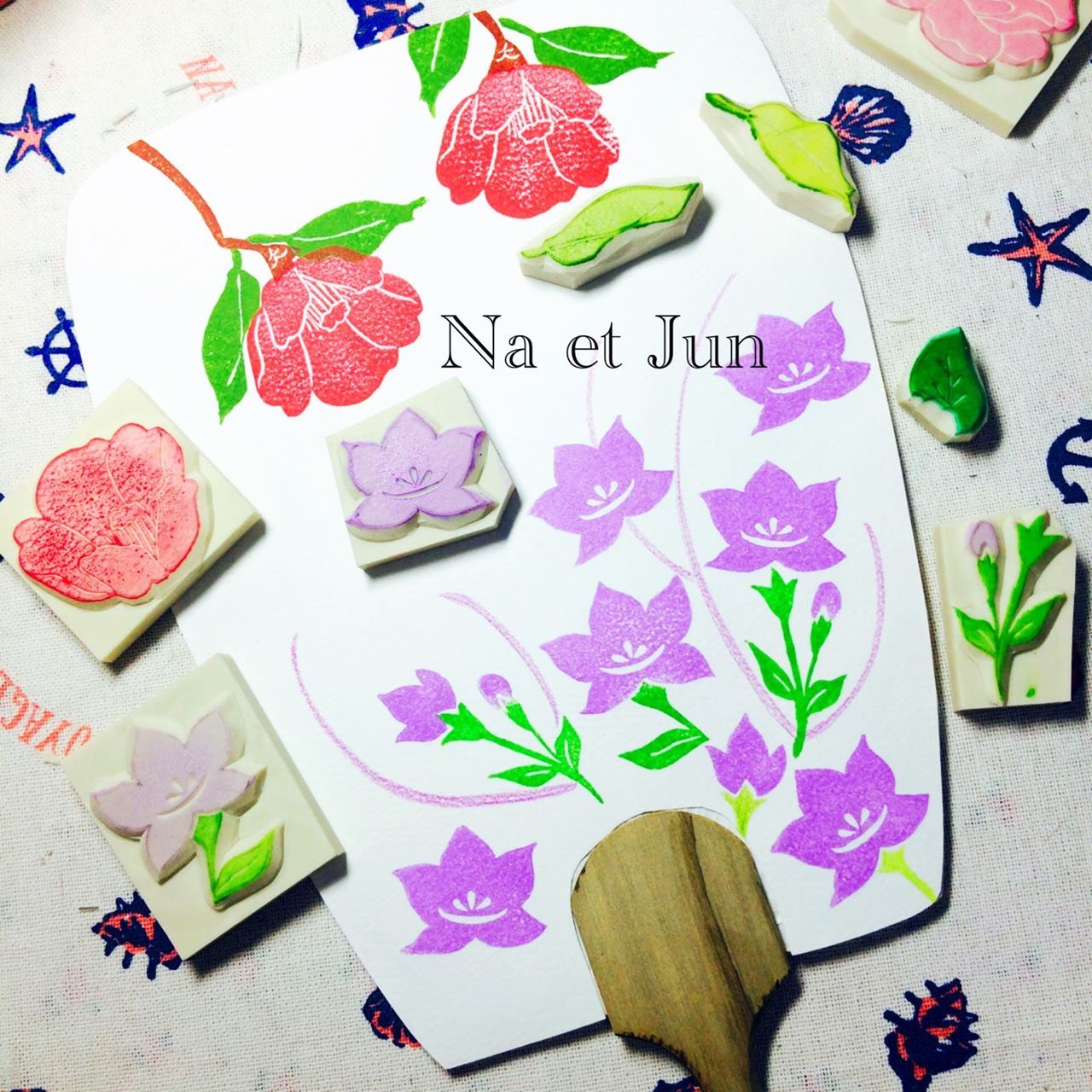 使用那已經完成的茶花及桔梗印章來蓋印