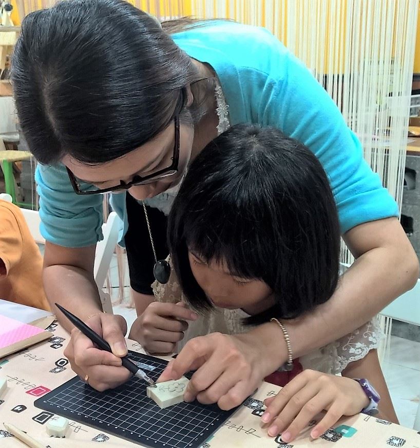 課程包括基礎及進階刀法雕刻,簡易配色運用,認識印泥、橡皮