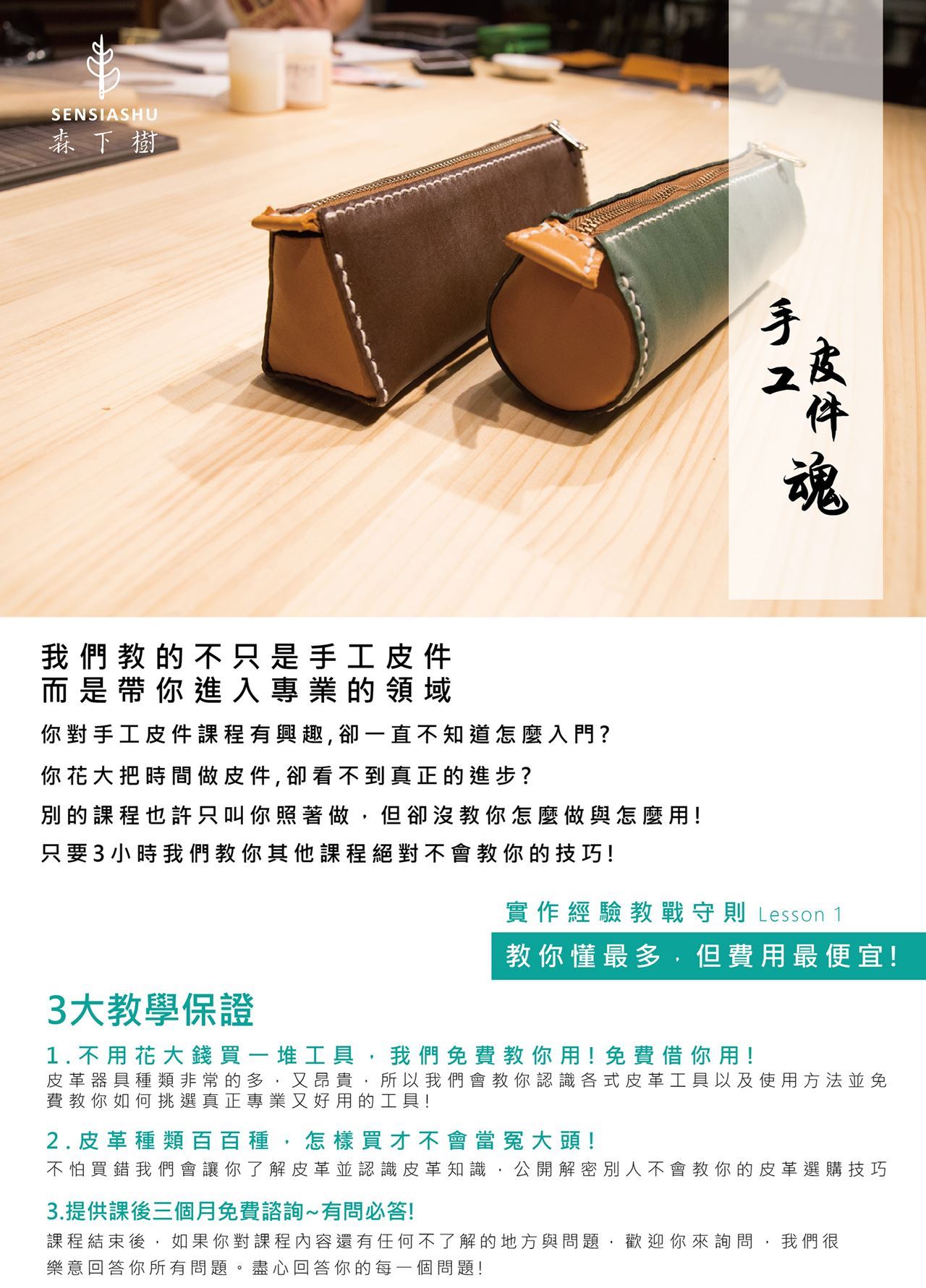 1.凡報名本次課程,即贈送森下樹天然皮革保養蜜蠟一瓶