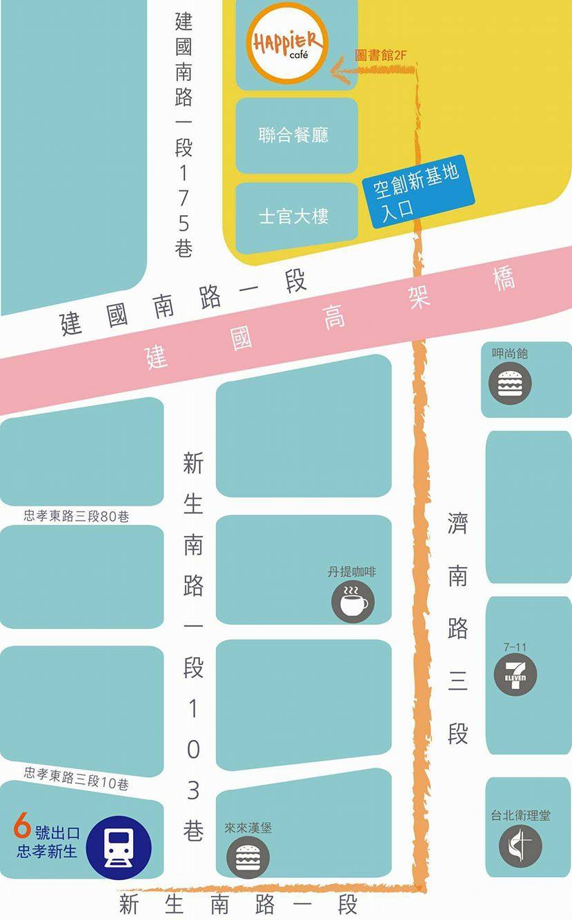 地址:台北市大安區建國南路一段177號 -TAF空總圖書館2樓( 忠孝新生六號出口,左轉濟南路,走到底)