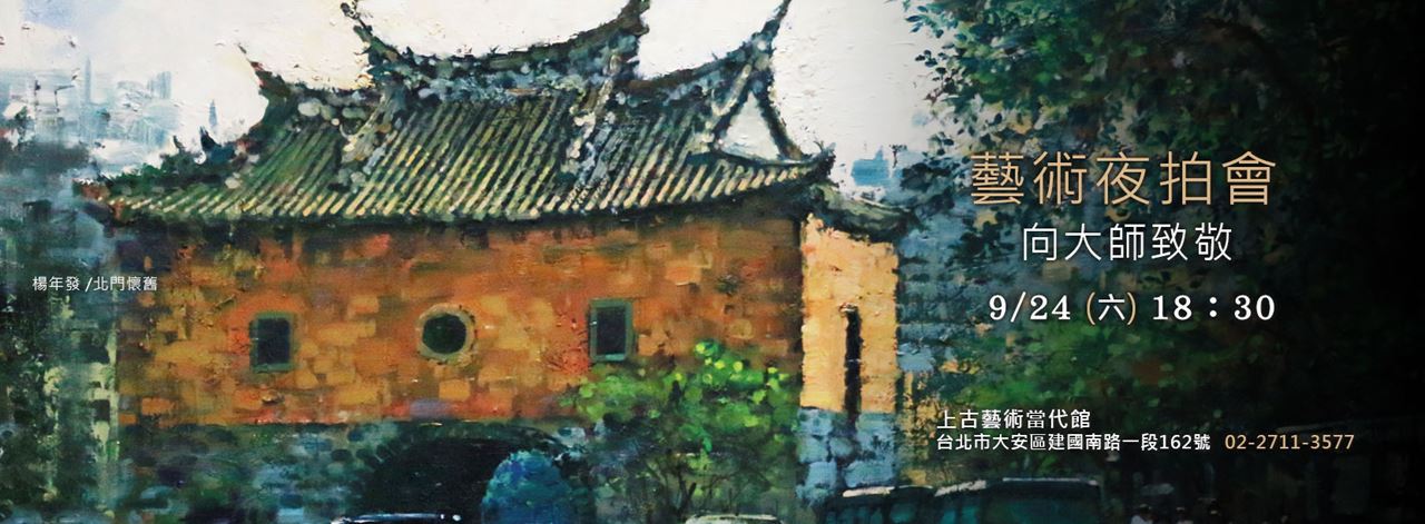 在夜拍會裡,不僅可欣賞百件真跡名作,更能進一步收藏這些極具典藏價值的創作,還有真跡摸彩、慶生、音樂會....等熱鬧活動,席位有限,預約請洽上古國際藝術,台北市建國南路一段162號,忠孝新生捷運站3號出口。02-2711-3577#13。