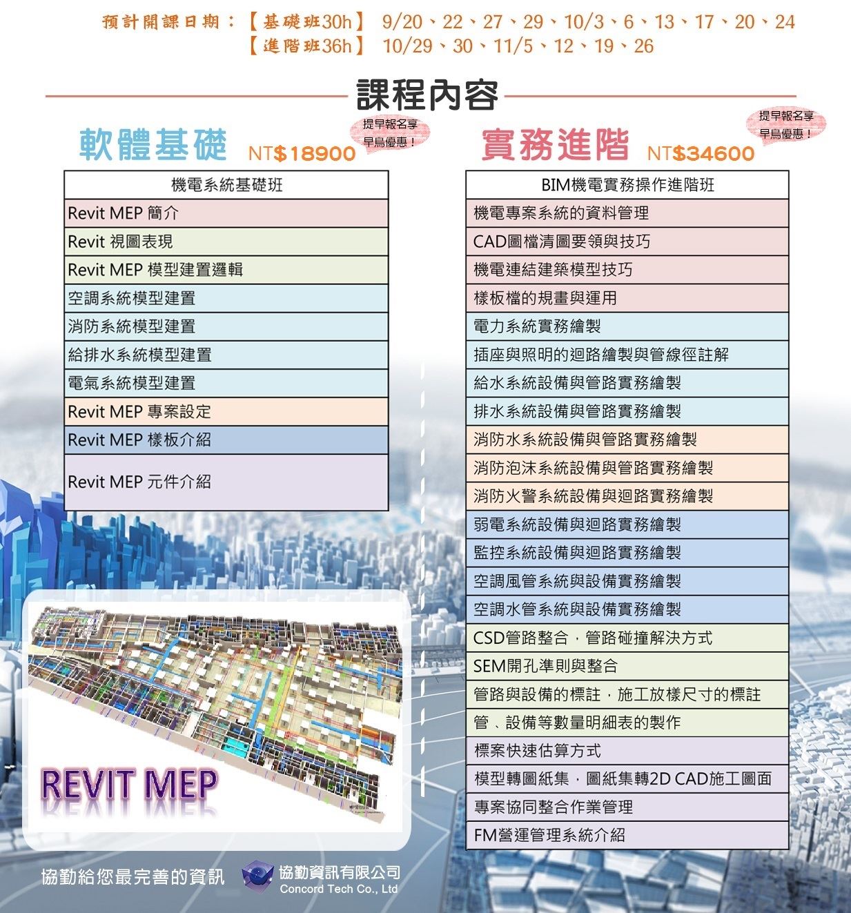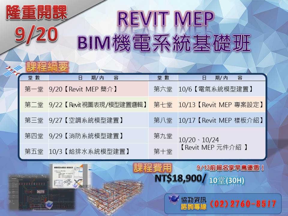 ★9/20起開課 REVIT MEP- BIM機電系統基礎班