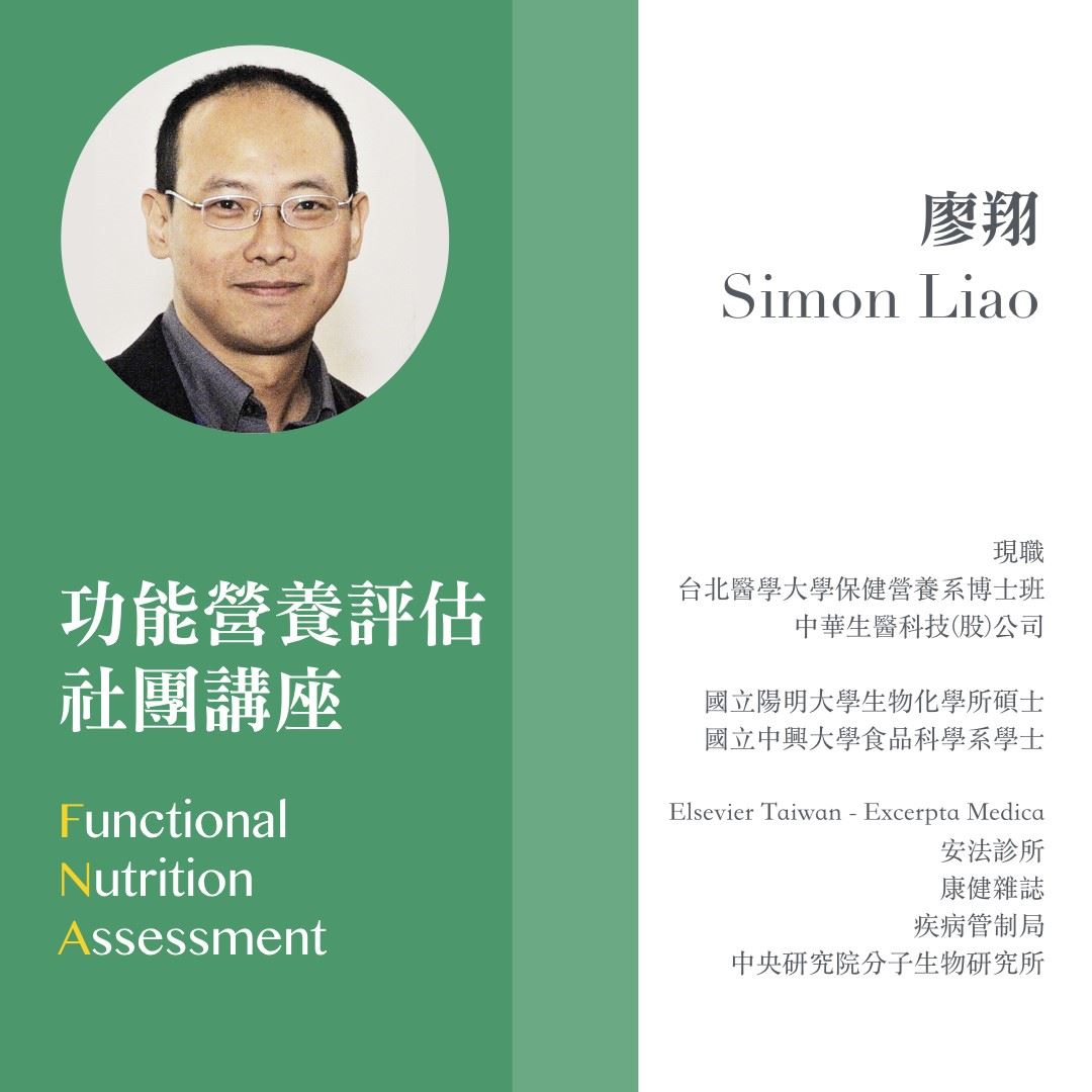 這次講座將把他這十幾年來接觸功能醫學的經驗與想法跟大家分享,同時也會分享他在業界面試過眾多營養師之後的一些體悟,營養師在這業界應該如何定位自己,應該具備哪些能力才能讓自己在產業內更有競爭力,絕對值得一聽。