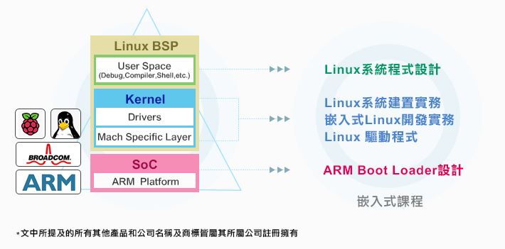 2. 全新Bottom-up 速學模式: 以開發者的角度直效學習,從底層Boot Loader設計, 往上進入Linux OS系統到Linux 驅動程式完成,當一個以Linux為基礎的嵌入式系統建構完成後,才開始進入系統應用的開發階段。