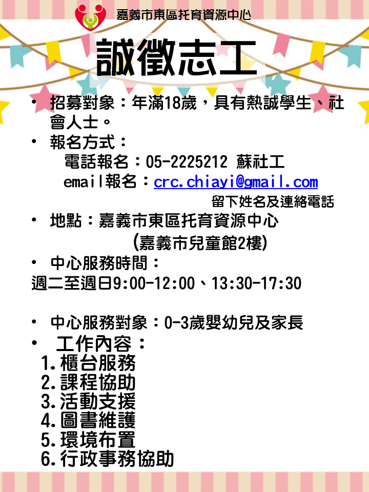 | *托育資源中心志工招募中 http://harvest365.org/events/3578 歡迎與我們共創嬰幼兒新天地,9月16日報名截止 |