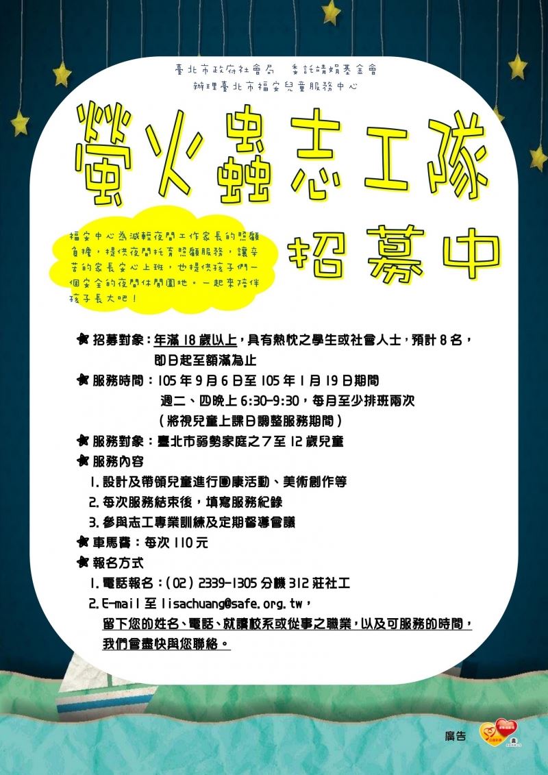 | *▶夜間保育志工◀ 招募中 http://harvest365.org/posts/3681 提供孩子們一個安全的夜間休閒園地,10月6日報名截止 |