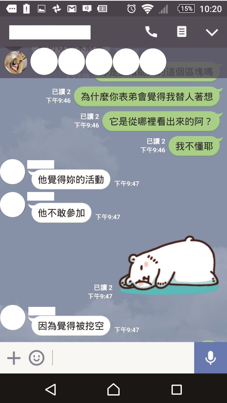 M:「還有他們說坊間有一些活動可能只有去半天,然後就是很生活化,大家可以玩玩,比較不會被看穿,那種比較安全。所以你要不要考慮開生活化的活動阿?」