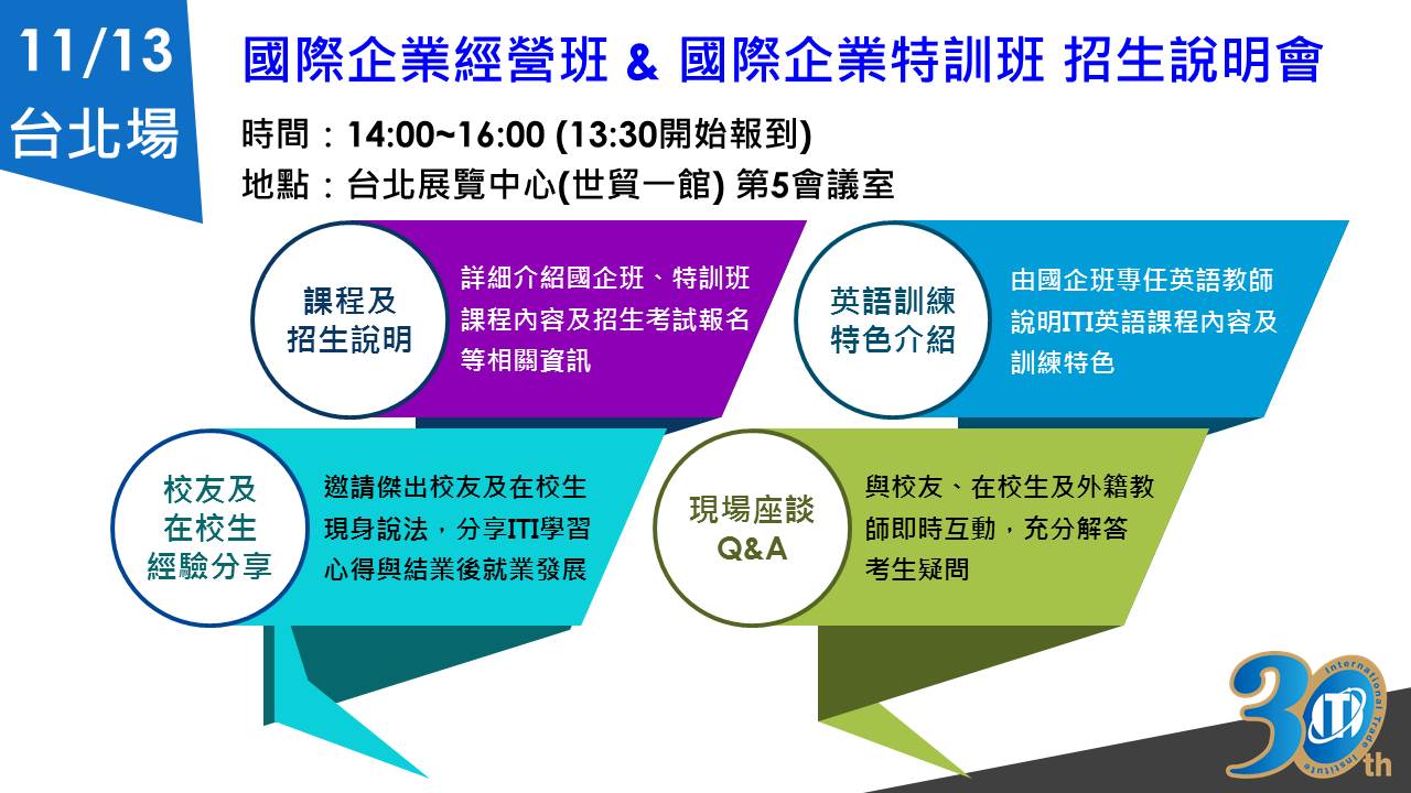 國際企業人才培訓中心-106年度招生說明會-11/13台北場