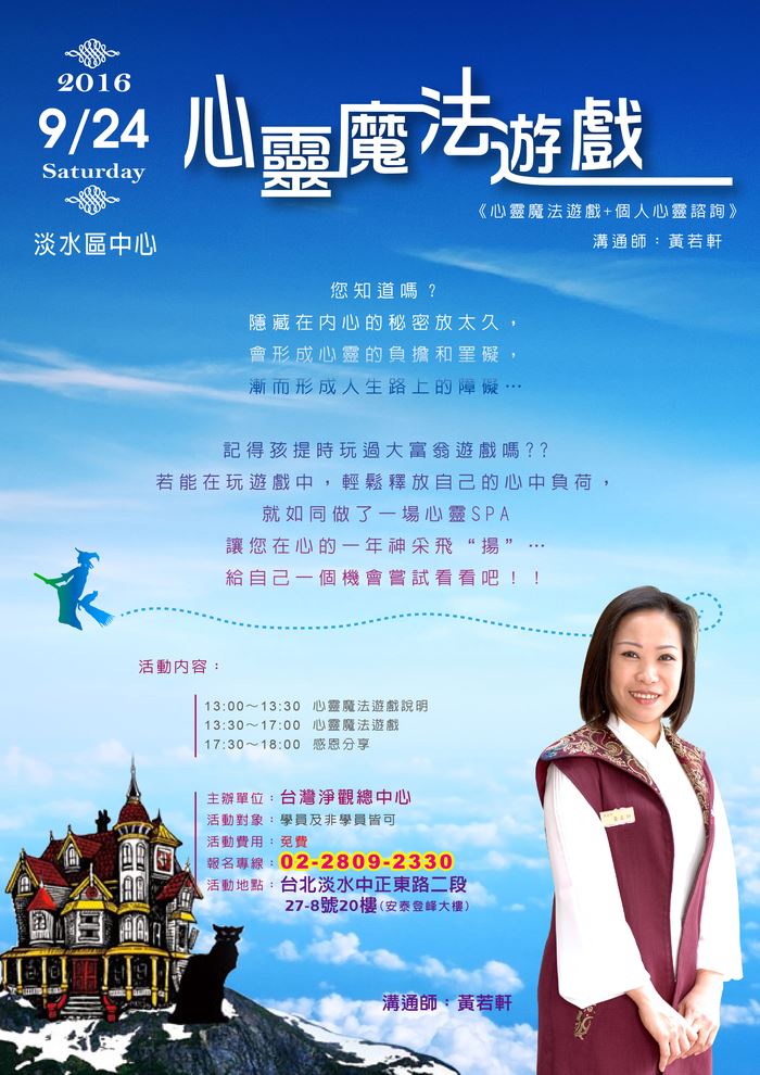 活動地點:新北市淡水區中正東路2段27-8號20樓(安泰登峰大樓)
