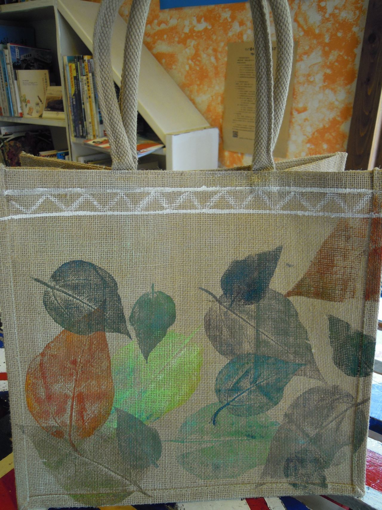 圖為七月份《手繪印染麻布包》工作坊示範作品