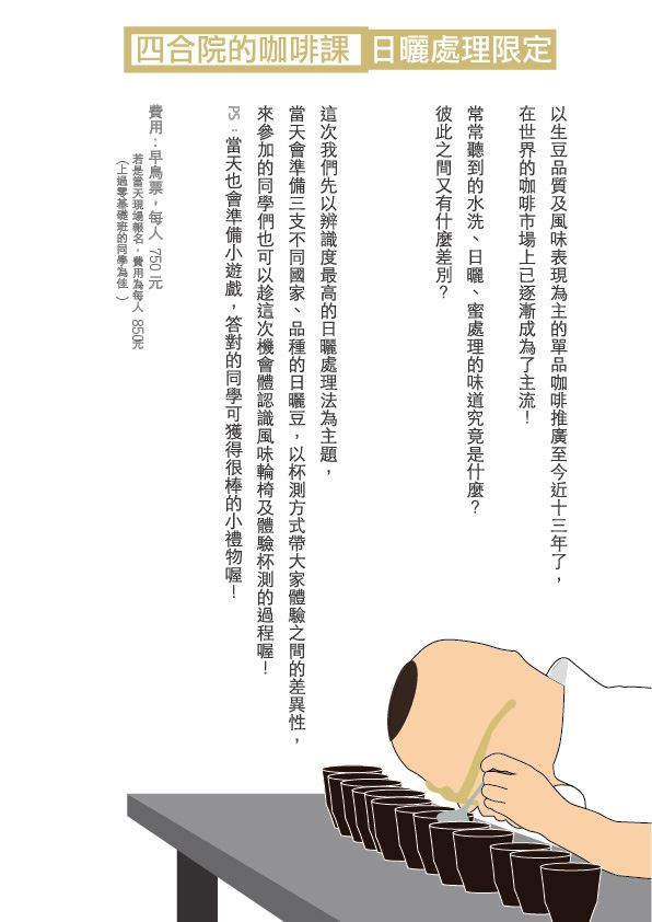參加「四合院的咖啡課:日曬處理限定」可以....