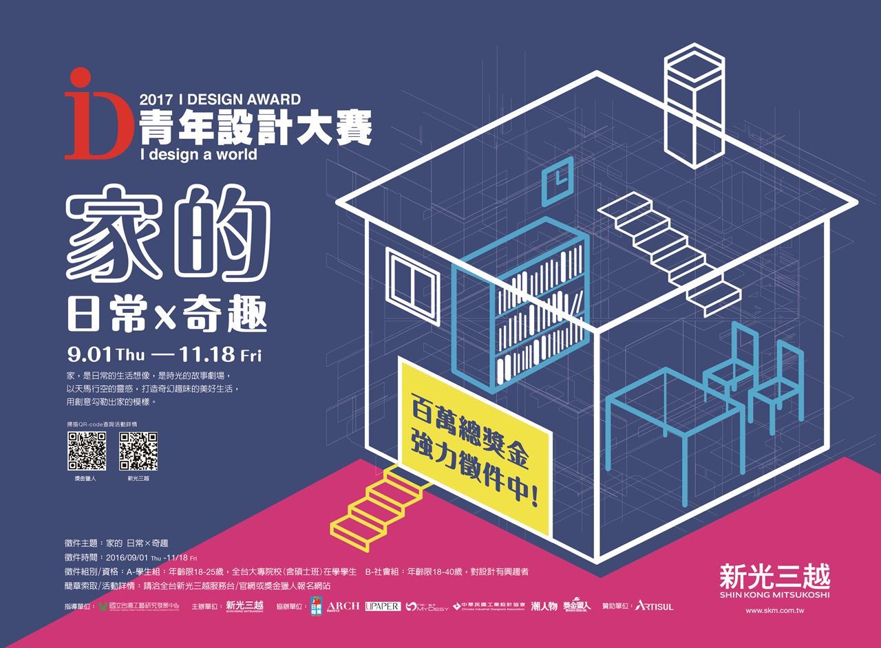「2017青年設計大賽I DESIGN AWARD」以【家的 日常X奇趣】為創作主題,期望讓參賽者不設限地思考與創作出想像中或記憶中的【家的 日常X奇趣】。