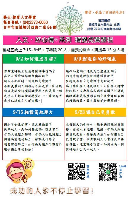 柳岸人文學堂9/23 讓自己更勇敢