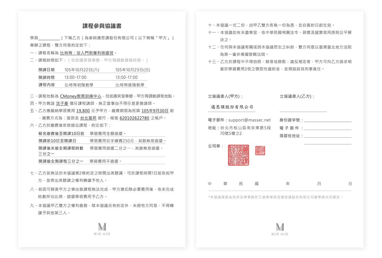 當您選擇立即報名表示您已同意本協議書的權利及義務,並同意於現場親自簽署本協議書。