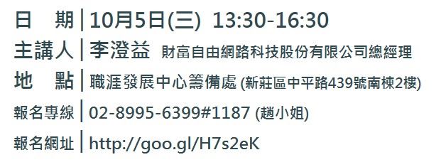 本活動請逕自 http://goo.gl/H7s2eK 系統線上報名(勿於此報名)