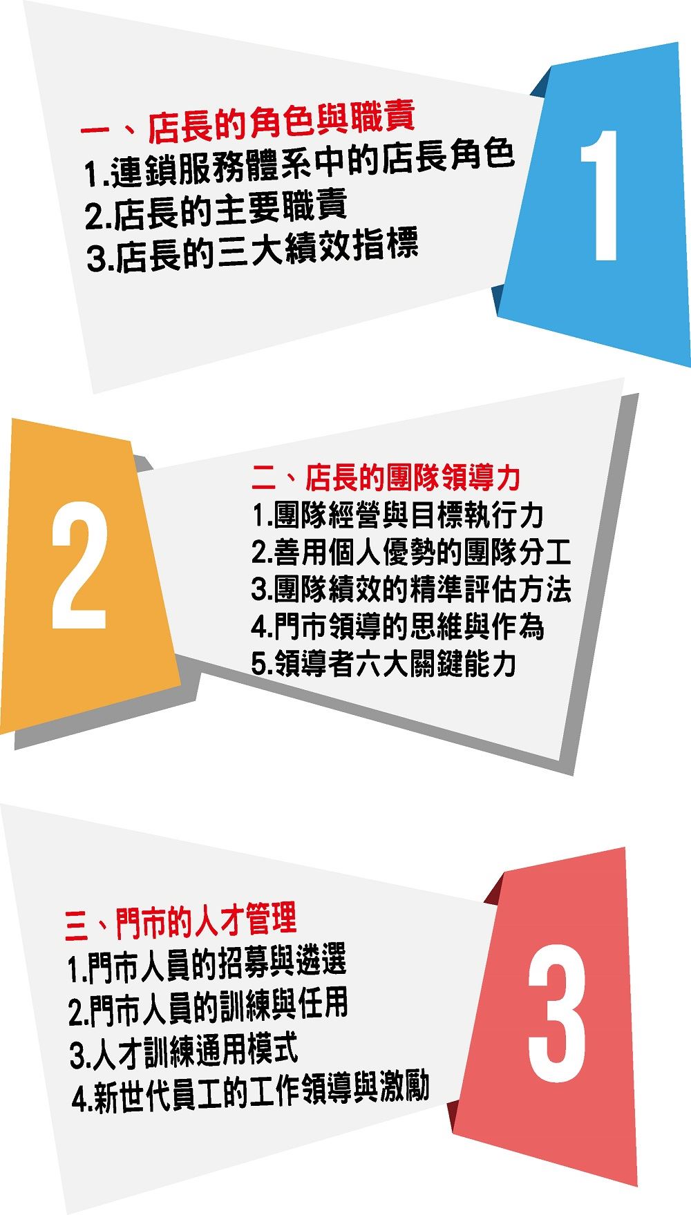 本課程將從門市店員的 領導 與 管理 切入,釐清門市店長所扮演之角色外,讓每位店長都能成為公司散播於各門市的種子,透過執行方法與經營管理技巧讓店鋪扎根門市所在地、品牌與理念持續開枝散葉。並透過講師深入的討論與講解,培養店長對於新時代人才的選、育、用更加得心應手!